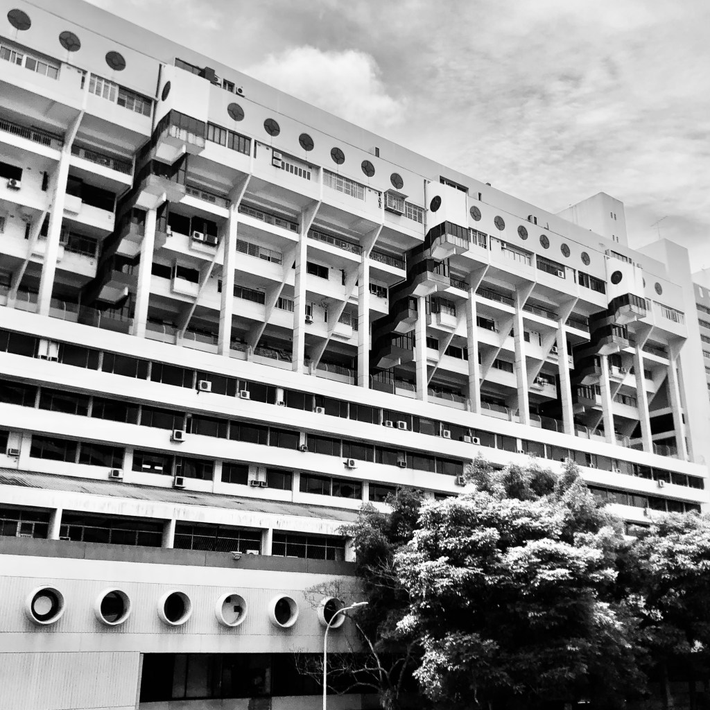 Arriving at this behemoth of a building from Beach Road is like pulling up dockside to a landlocked, mega cruise ship. Unlike other Brutalist structures known for their exposed concrete surfaces, Golden Mile Complex is painted in white, grey and beige. Although the building is only 16 storeys tall, its footprint is over 1.3 hectares, roughly the area of an entire New York City block.