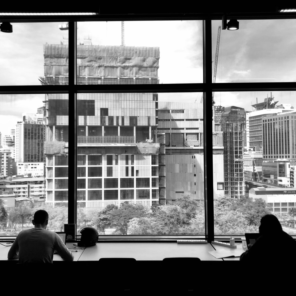 I remember the first time I walked into TCDC, making my way up a series of soul numbing escalators through the luxury brand and eatery-drenched environs of Emporium, in what was then and still is, one of Bangkok’s most high-end shopping centres. Perhaps because of the retail journey that I had to go through to get to the top floor, the space that finally greeted me felt all the more unexpected — a cavernous, visually stunning, elongated, multi-roomed library, filled with natural light. For anyone who had even the faintest grasp of design, TCDC immediately spoke to them, as it did to me. Exposed ceilings (blackened for effect) contrasted on one side with double-height windows running the entire length of the space, providing unobstructed views of the city and Benjasiri Park below, while on the other side, shelf after shelf filled with thousands of thoughtfully curated books and magazines on topics such as advertising, design and branding. Row after row of white communal long tables filled the library, along with glass enclosed study pods and meeting rooms interspersed throughout. In the rear of the space was a specialised facility called Material Connexion, a world-class materials resource for furniture and architectural design. To round off the centre, there was an independently run cafe whimsically called Kiosk, and an equally whimsically named information desk called Guru. It was a visual and physical oasis for the creativity-starved Bangkokians of the day. High-end fixtures, study-inducive lighting and designer furniture was not just on display, but meant to be used and experienced in a communal way that connected people not only to each other, but to the co-working environment of the future. For anyone who did not yet work in a creative agency or a multinational tech firm, TCDC was a revelation.