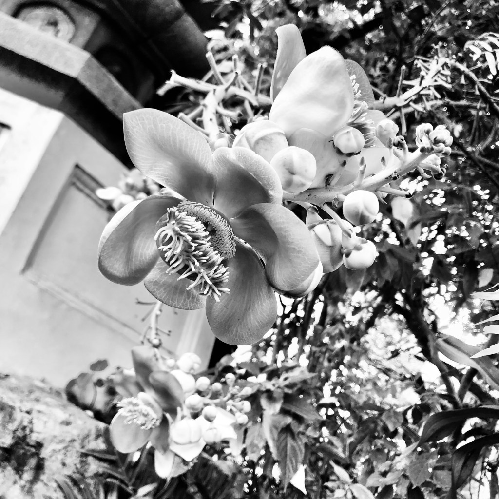 There is one final facet of Khao Mo that I found personally very poignant, amongst the many rare tropical plantings within the garden stands one of the largest trees with odd spindly lower branches that swirl and reach out like tentacles with hundred of round bulbs in various stages of bloom. Towards the end of each of these flowering limbs are blossoms that explode with pedals in varying hues of peach, ranging from pink to orange to yellow and white, and in the middle of this floral burst is a bristling crown of stamens in equally eye-catching tones. The name of this wondrously exotic tree? It’s latin name Couroupita Guianensis may not ring a bell but its common name will sound poetically appropriate in this setting: the Cannon Ball Tree.